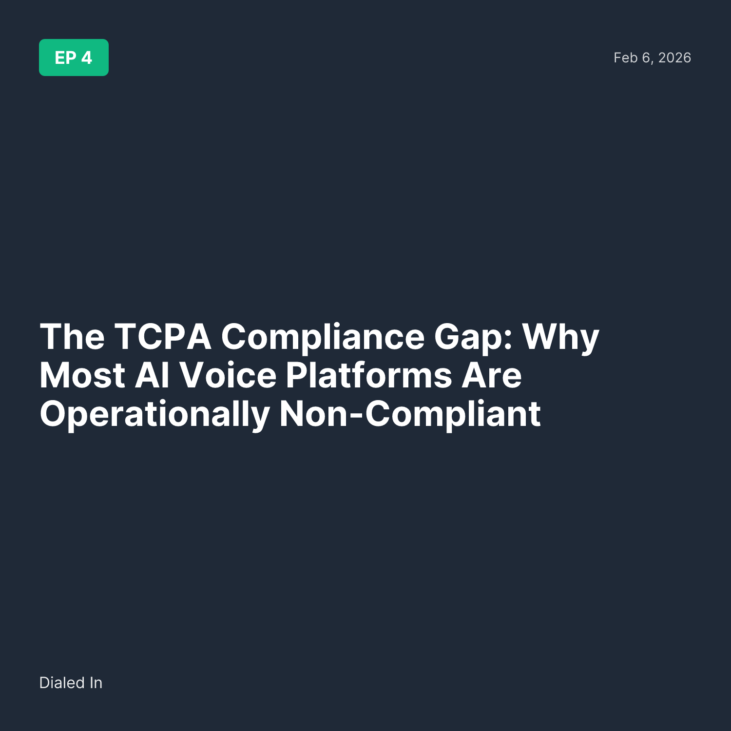 Speaker 4: Most AI voice companies market TCPA compliant like it's a feature, but compliance is not a feature. Compliance is part of the system. If some of the TCPA features are not programmed at the platform level, it's wishful thinking that any company can be compliant at all.